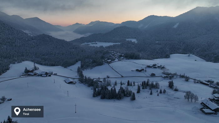 Im Bergsteigerdorf Steinberg am Rofan an der bayerischen Grenze ist der Winter voll zurückgekehrt. Im Ort in der Region Achensee auf 1.015 Metern Seehöhe starten die rund 290 Einwohner mit frostigen Temperaturen in den Tag.