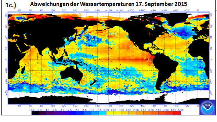 Übrigens ist der Golfstrom nicht insgesamt kälter geworden. Vor der Ostküste Amerikas ist er im September mehr als 3 Grad zu warm gewesen und auch in weiten Teilen der Labradorsee, zwischen Neufundland und Grönland, wurden positive Abweichungen bis zu 2 Grad gemessen. Auch hier ist eine Auswirkung kaum abzuschätzen.