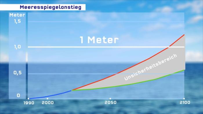Die Halligen sind also vom steigenden Wasser bedroht. Der Grund für den steigenden Meeresspiegel ist die Klimaerwärmung. Gigantische Mengen an Eis und Schnee schmelzen vor allem auf Grönland und in der Westantarktis. Bis zum Ende des Jahrhunderts wird bei ungebremsten CO2-Emissionen der Meeresspiegel um etwa einen Meter ansteigen.