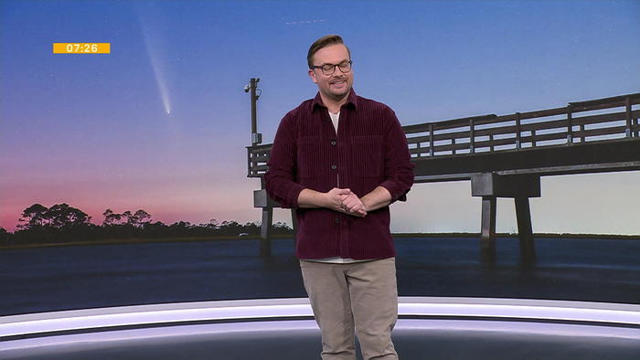Zu Wochenbeginn lohnt sich bei freier Sicht bis zum Horizont ein Blick in den Abendhimmel: Dort gibt es das seltene Schauspiel eines mit langem Schweif vorbeiziehenden Kometen. Experten empfehlen, sich dafür nach Sonnenuntergang einen Platz mit guter Sicht zum Westhorizont - also ohne Bebauung - zu wählen.