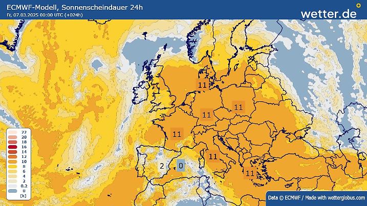 Am Freitag null Stunden Sonne auf Mallorca, aber 11 bei uns. Mehr als 11 ist derzeit nicht möglich wegen der doch noch kurzen Tageslänge. Dazu kommt der Regen, auch am Wochenende. Am Sonntag sind zwischen 60 und 70 Liter Regen in Katalonien und den Balearen berechnet. Und wir sitzen hier schön im Café.