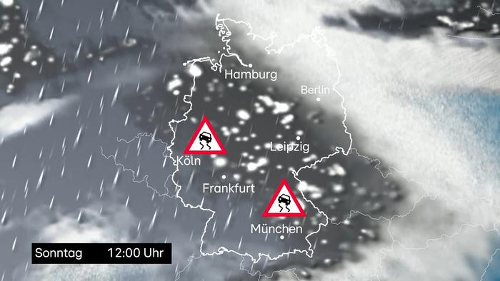 Sehr milde Luft strömt von Spanien her nach Deutschland. Allerdings dauert es eine Weile bis die zuvor eingeflossene Kaltluft ausgeräumt wird. Dabei gehen die Niederschläge von Schnee in Regen über. Sowohl Schnee als auch Regen kann gefährliche Straßenverhältnisse verursachen. Besonders der Regen ist in diesem Fall problematisch, weil er auf den kalten Böden gefrieren kann. Dann droht Glätte.