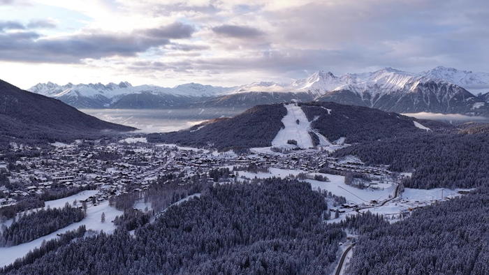 Ein klarer Wintertag auf dem Seefelder Plateau: frischer Neuschnee, sanfter Nebel im Tal und Sonne über den Gipfeln. Gut präparierte Loipen, glitzernde Schneelandschaft und Temperaturen um den Gefrierpunkt – ideale Voraussetzungen für Wintersport in der Olympiaregion Seefeld.
