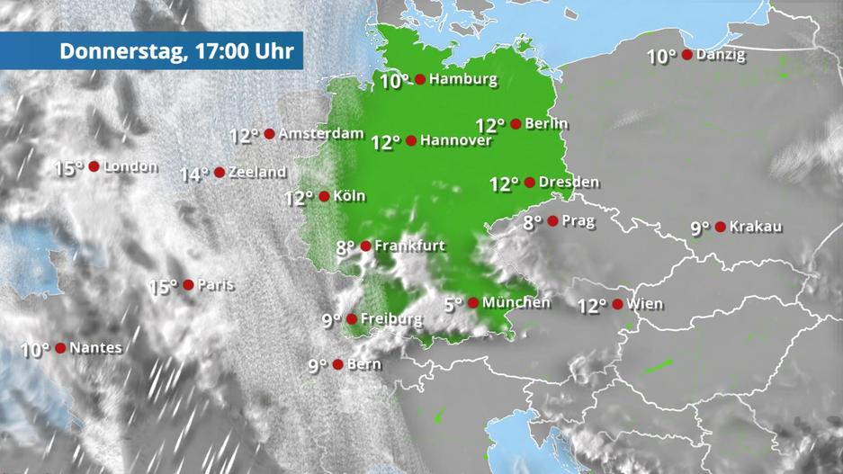 Regen- und Wolkenfilm für Hannover, Osnabrück und WolfsburgBremen und Niedersachsen: Wie wird das Wetter?