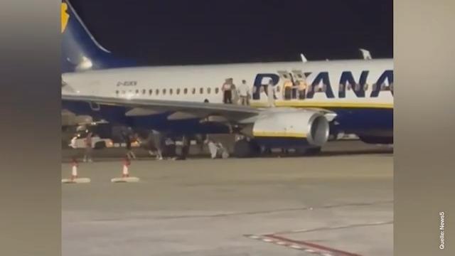 In einem Ryanair-Flieger am Flughafen von Palma de Mallorca ist eine Massenpanik ausgebrochen. Ein falscher Alarm deutet ein Feuer in der Maschine an; die Passagiere flüchten über die Tragflächen des Flugzeugs ins Freie.
