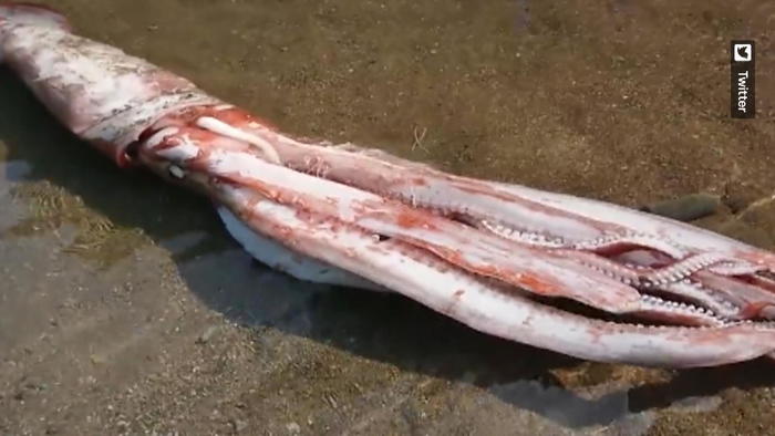 Vorsichtig misst ein Forscher, wie groß dieses Tiefsee-Ungeheuer ist. Unfassbare drei Meter lang! In Japan wurde ein Riesenkalmar an den Strand angespült. Die beeindruckenden Aufnahmen zeigen wir im Video.