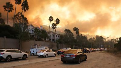 Zehntausende Menschen sind in Südkalifornien vor rasch um sich greifenden Flammen auf der Flucht. Ein zunächst kleines Feuer am Westrand von Los Angeles verwandelte sich durch heftige Winde rasch in ein Inferno. Die Anwohner von Pacific Palisades an der Pazifikküste mussten teils fluchtartig ihre Häuser verlassen. 30.000 Menschen seien von Evakuierungen betroffen, teilte die Feuerwehrchefin von Los Angeles, Kristin M. Crowley, am Dienstagnachmittag (Ortszeit) mit. Berichte über Verletzte gäbe es zunächst aber nicht, allerdings seien mehrere Gebäude in Flammen aufgegangen, sagte Crowley. Den Einsatz von mehr als 250 Feuerwehrleuten beschrieb sie als "extrem schwierig".