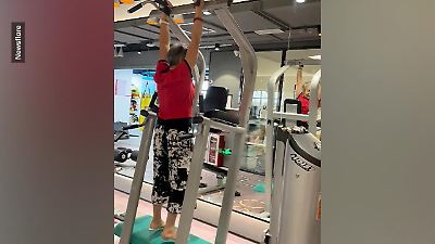 Diese chinesische Fitness-Oma zeigt im Studio, was sie kann. Und das ist einiges!