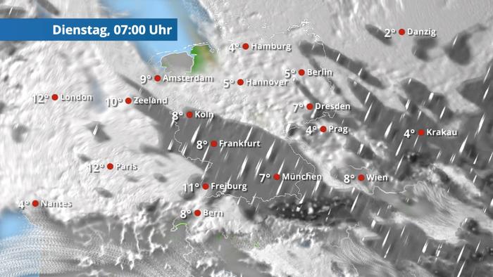 Wann regnet oder schneit es? Und wo regnet oder schneit es? Wie warm wird es? Diese Animation zeigt, wie Wolken, Schnee und Regen heute und morgen über Deutschland ziehen und wie hoch die Temperaturen dazu steigen oder wie tief sie sinken. Prognose vom 24. Februar 2026 um 02:02 Uhr