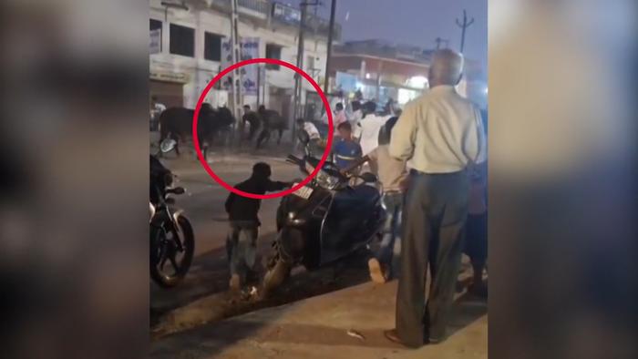 In Indien will ein Mann einen Streit zwischen zwei Bullen schlichten. Ein Tier lässt von seinem Gegner ab und schleudert stattdessen den Mann drei Meter in die Luft. Er muss verletzt ins Krankenhaus. Die Attacke seht ihr im Video.
