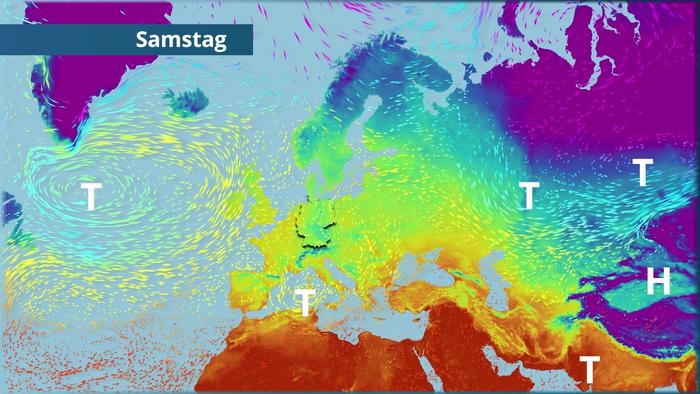 Ein Blick auf die Großwetterlage mit ihren großflächigen Luftströmungen hilft beim Verständnis des Wetterberichts. Wie ziehen die Tiefs, wie verlagern sich die Hochs? Und wie kräftig weht dazu der Wind? Die Entwicklung der Temperaturen in Deutschland und ganz Europa ist gut zu erkennen. Prognose vom 07. November 2025 um 12:00 Uhr
