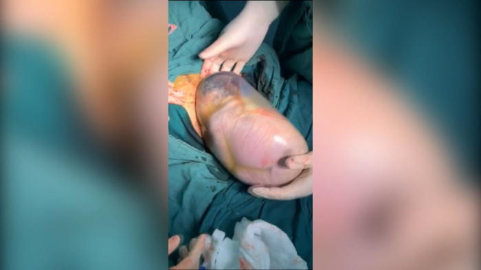 Die Fruchtblase war noch komplett intaktBaby in "Glückshaube" geboren worden