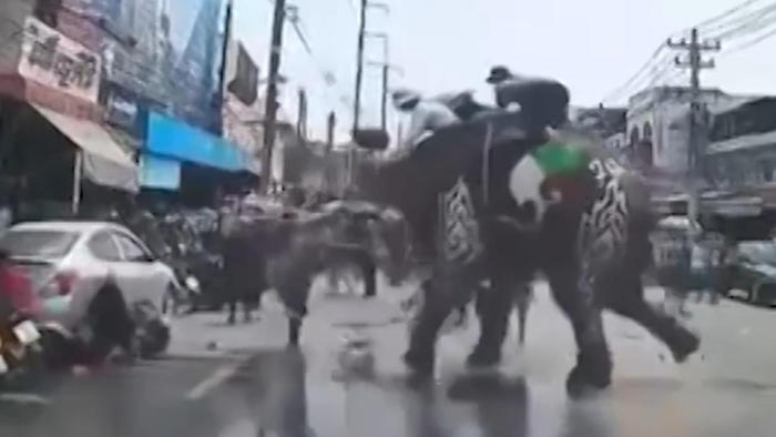Plötzlich verliert er die Nerven! Beim thailändischen Neujahrsfest muss auch ein Elefant an der Parade teilnehmen. Doch bei Temperaturen über 40 Grad stürmt der gestresste Dickhäuter plötzlich auf mehrere Schaulustige zu. Was passiert ist, erfahrt ihr im Video.
