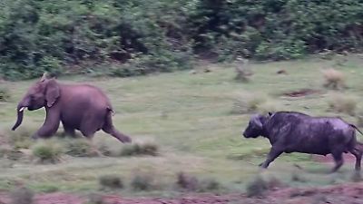 Bei einer Safari in Kenia filmt Bryan Pereira eine dramatische Begegnung: Ein Baby-Elefant kommt einem Büffel beim Grasen zu nahe – und bereut seine Entscheidung sofort! Wie die brenzlige Situation ausgeht, erfahrt ihr im Video!