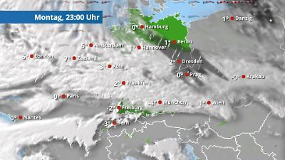 Wann regnet oder schneit es? Und wo regnet oder schneit es? Wie warm wird es? Diese Animation zeigt, wie Wolken, Schnee und Regen heute und morgen über Deutschland ziehen und wie hoch die Temperaturen dazu steigen oder wie tief sie sinken. Prognose vom 29. Dezember 2025 um 12:15 Uhr