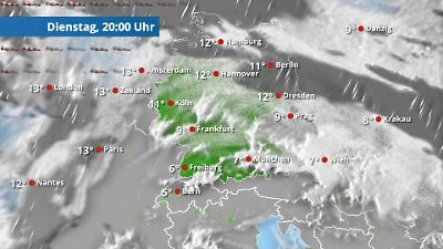 Wann regnet oder schneit es? Und wo regnet oder schneit es? Wie warm wird es? Diese Animation zeigt, wie Wolken, Schnee und Regen heute und morgen über Deutschland ziehen und wie hoch die Temperaturen dazu steigen oder wie tief sie sinken. Prognose vom 09. Dezember 2025 um 12:15 Uhr