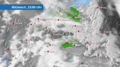 Wann regnet oder schneit es? Und wo regnet oder schneit es? Wie warm wird es? Diese Animation zeigt, wie Wolken, Schnee und Regen heute und morgen über Deutschland ziehen und wie hoch die Temperaturen dazu steigen oder wie tief sie sinken. Prognose vom 14. Januar 2026 um 02:02 Uhr