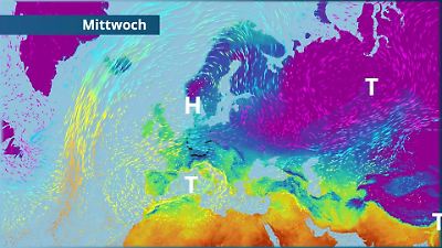Ein Blick auf die Großwetterlage mit ihren großflächigen Luftströmungen hilft beim Verständnis des Wetterberichts. Wie ziehen die Tiefs, wie verlagern sich die Hochs? Und wie kräftig weht dazu der Wind? Die Entwicklung der Temperaturen in Deutschland und ganz Europa ist gut zu erkennen. Prognose vom 23. Dezember 2025 um 12:00 Uhr
