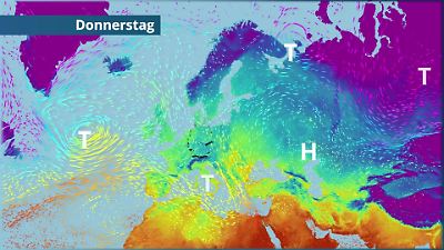 Ein Blick auf die Großwetterlage mit ihren großflächigen Luftströmungen hilft beim Verständnis des Wetterberichts. Wie ziehen die Tiefs, wie verlagern sich die Hochs? Und wie kräftig weht dazu der Wind? Die Entwicklung der Temperaturen in Deutschland und ganz Europa ist gut zu erkennen. Prognose vom 03. Dezember 2025 um 12:00 Uhr