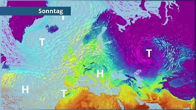 Ein Blick auf die Großwetterlage mit ihren großflächigen Luftströmungen hilft beim Verständnis des Wetterberichts. Wie ziehen die Tiefs, wie verlagern sich die Hochs? Und wie kräftig weht dazu der Wind? Die Entwicklung der Temperaturen in Deutschland und ganz Europa ist gut zu erkennen. Prognose vom 13. Dezember 2025 um 12:00 Uhr