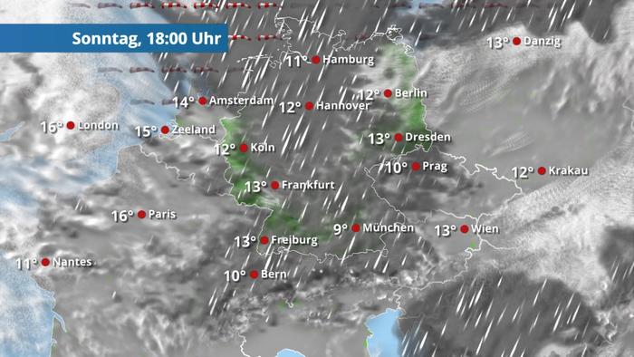 Wann regnet oder schneit es? Und wo regnet oder schneit es? Wie warm wird es? Diese Animation zeigt, wie Wolken, Schnee und Regen heute und morgen über Deutschland ziehen und wie hoch die Temperaturen dazu steigen oder wie tief sie sinken. Prognose vom 05. Oktober 2025 um 02:02 Uhr