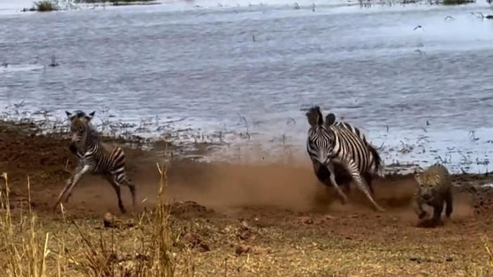 Im Tarangire-Nationalpark in Tansania spielt sich ein atemberaubender Überlebenskampf ab: Eine Zebra-Mutter stellt sich furchtlos einem Leoparden in den Weg. Gerade als sie mit ihrem Fohlen aus dem Wasser kommt, startet der Räuber seinen Angriff. Doch die Mutter wirft sich heldenhaft dazwischen und riskiert ihr Leben, um ihr Baby zu schützen. Guide Charles Jackson Magembe filmt den dramatischen Moment. Ihr seht ihn im Video!