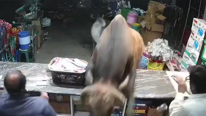 Während einige Männer aus Indien gerade ihre Einkäufe erledigen, gehen vor dem Laden ein Rind und ein Stier aufeinander los. Doch sie verlagern ihren Streit kurzerhand ins Geschäft! Wie die heikle Situation ausgeht, das seht ihr im Video.