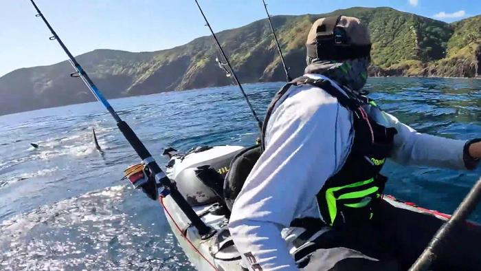 Da rutscht einem das Herz in die Hose! Denn während der Australier an der Küste von Northland in Neuseeland gemütlich angelt, begegnet ihm plötzlich ein weißer Hai. Und der möchte einfach nicht von dem Kayak ablassen. Wie diese Situation ausgeht, das seht ihr im Video.