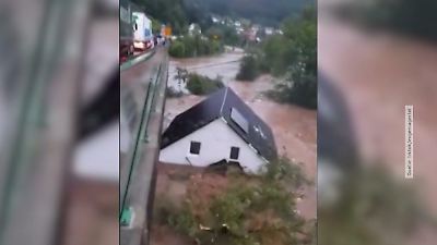 Unwetter: Strom reißt Autos und Wohnmobile mit