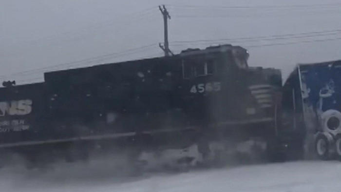 Heftige Kollision in North CarolinaLkw-Fahrer steckt auf vereisten Gleisen fest – dann kommt der Zug!