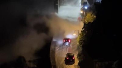 Neben einer Küstenstraße im italienischen Kalabrien bläst ein Sturm Flutwellen in Richtung der Fahrbahn – und erwischt dort zwei Autos vor einem Tunnel. Die Fahrer müssen auf einmal mit der Strömung kämpfen, wie ihr oben im Video sehen könnt.