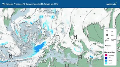 Wie wird sich die aktuelle Wetterlage in den nächsten Tagen entwickeln? Dieses Video zeigt eine Prognose für die Zugbahnen der Tiefdruckgebiete (Tiefs) und Hochdruckgebiete (Hochs) über dem Nordatlantik und Europa. Die Ausläufer der Tiefs können Wolken, Regen, Gewitter oder Schnee bringen. Ruhiges Wetter gibt es eher bei Hochdrucklagen. Besonders im Sommer kann es dann auch viel Sonnenschein geben. Die rundlichen Linien werden Isobaren genannt. Eine ausführliche Erläuterung der aktuellen Wetterlage findet sich in der Regel im aktuellen Wetterbericht von wetter.de. Dort werden oft auch die Namen der aktuellen Tiefs und Hochs vorgestellt. Prognose vom 14. Januar 2026 um 03:00 Uhr