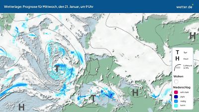 Wie wird sich die aktuelle Wetterlage in den nächsten Tagen entwickeln? Dieses Video zeigt eine Prognose für die Zugbahnen der Tiefdruckgebiete (Tiefs) und Hochdruckgebiete (Hochs) über dem Nordatlantik und Europa. Die Ausläufer der Tiefs können Wolken, Regen, Gewitter oder Schnee bringen. Ruhiges Wetter gibt es eher bei Hochdrucklagen. Besonders im Sommer kann es dann auch viel Sonnenschein geben. Die rundlichen Linien werden Isobaren genannt. Eine ausführliche Erläuterung der aktuellen Wetterlage findet sich in der Regel im aktuellen Wetterbericht von wetter.de. Dort werden oft auch die Namen der aktuellen Tiefs und Hochs vorgestellt. Prognose vom 20. Januar 2026 um 03:00 Uhr