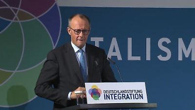 Die Stipendiaten der Deutschlandstiftung Integration, die Friedrich Merz hier in Berlin begrüßt, freuen sich offensichtlich nicht, dass der Bundeskanzler da ist. Direkt zu Beginn seiner Rede verlassen rund 30 Personen demonstrativ den Saal. Ruhig, geordnet. Der Bundeskanzler redet weiter, lässt sich äußerlich nichts anmerken. Die Stipendiaten tragen Sticker mit der Aufschrift „Wir sind das Stadtbild". Merz hatte Mitte Oktober öffentlich von einem Problem im Stadtbild im Zusammenhang mit Migration gesprochen und mehr Abschiebungen angekündigt. Erst eine Woche später, nach heftiger Kritik, wurde er konkreter. Probleme würden jene Migranten machen, die keinen dauerhaften Aufenthaltsstatus hätten, nicht arbeiten und sich nicht an Regeln halten würden. In seiner Rede spricht Merz die Protestaktion der Stipendiaten nicht direkt an, er redet allgemein über gesellschaftlichen Zusammenhalt und Integration.