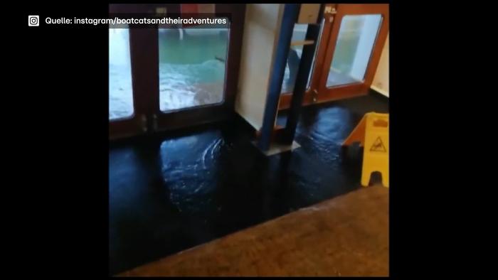 „Alter Schwede, wir halten alles fest! Das ist der Hammer!“ Das Kreuzfahrtschiff Aida aura ist in schwere See geraten. Urlauber von Bord berichten von hohem Wellengang – es läuft sogar Wasser ins Schiff.