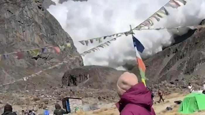 In Neapel ist eine Lawine auf 4.100 Metern Höhe auf ein Zeltlager zugerast. Die Menschen geraten in Panik und versuchen zu fliehen. Berichte über Verletzte gibt es bislang nicht.