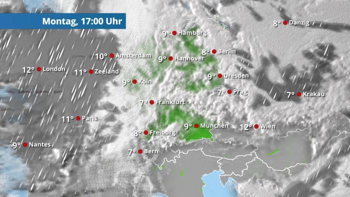 Wann regnet oder schneit es? Und wo regnet oder schneit es? Wie warm wird es? Diese Animation zeigt, wie Wolken, Schnee und Regen heute und morgen über Deutschland ziehen und wie hoch die Temperaturen dazu steigen oder wie tief sie sinken. Prognose vom 10. November 2025 um 02:02 Uhr