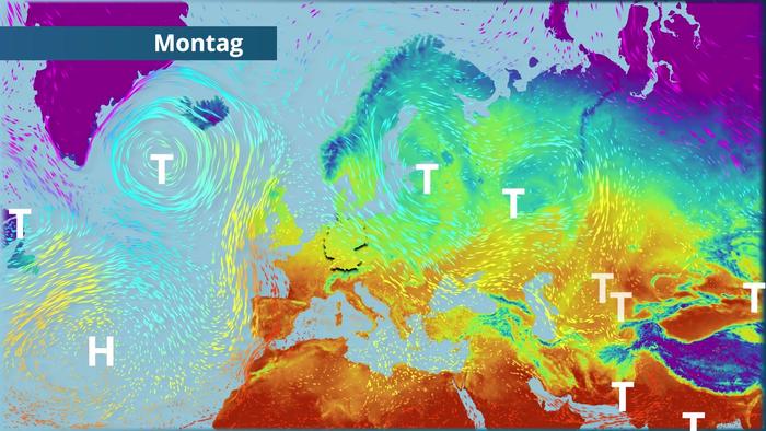 Ein Blick auf die Großwetterlage mit ihren großflächigen Luftströmungen hilft beim Verständnis des Wetterberichts. Wie ziehen die Tiefs, wie verlagern sich die Hochs? Und wie kräftig weht dazu der Wind? Die Entwicklung der Temperaturen in Deutschland und ganz Europa ist gut zu erkennen. Prognose vom 05. April 2026 um 12:00 Uhr