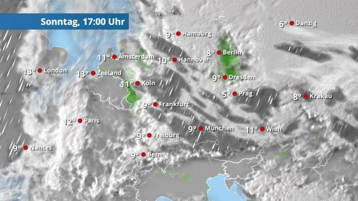 Wann regnet oder schneit es? Und wo regnet oder schneit es? Wie warm wird es? Diese Animation zeigt, wie Wolken, Schnee und Regen heute und morgen über Deutschland ziehen und wie hoch die Temperaturen dazu steigen oder wie tief sie sinken. Prognose vom 09. November 2025 um 02:02 Uhr