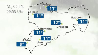 Diese Animation zeigt einen Wetterbericht für Sachsen. Prognose vom 09. Dezember 2025 um 00:10 Uhr