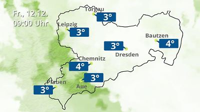 Diese Animation zeigt einen Wetterbericht für Sachsen. Prognose vom 12. Dezember 2025 um 00:10 Uhr