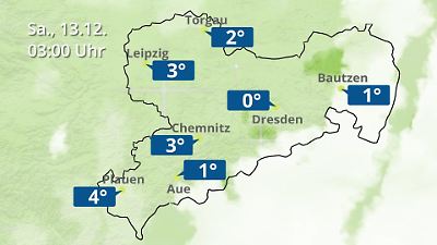 Diese Animation zeigt einen Wetterbericht für Sachsen. Prognose vom 12. Dezember 2025 um 18:10 Uhr