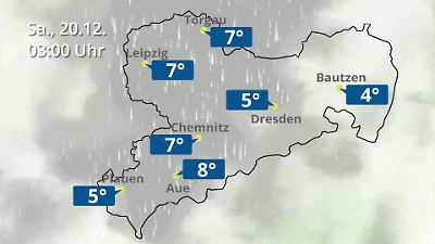 Diese Animation zeigt einen Wetterbericht für Sachsen. Prognose vom 19. Dezember 2025 um 18:10 Uhr