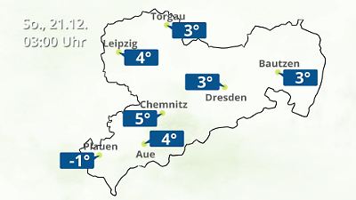 Diese Animation zeigt einen Wetterbericht für Sachsen. Prognose vom 20. Dezember 2025 um 18:10 Uhr