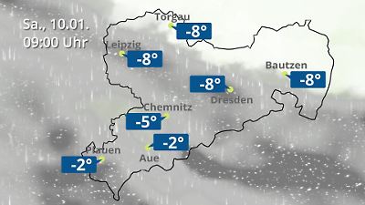 Diese Animation zeigt einen Wetterbericht für Sachsen. Prognose vom 10. Januar 2026 um 00:10 Uhr