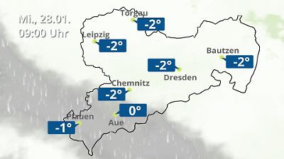 Diese Animation zeigt einen Wetterbericht für Sachsen. Prognose vom 28. Januar 2026 um 00:10 Uhr