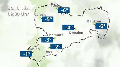 Diese Animation zeigt einen Wetterbericht für Sachsen. Prognose vom 01. Februar 2026 um 00:10 Uhr