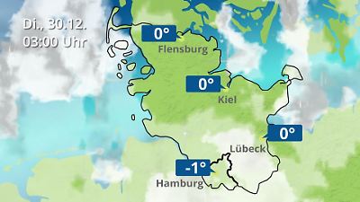 So wird das Wetter im Norden von Norddeutschland. Der Regen- und Wolkenfilm für Schleswig-Holstein und Hamburg, beziehungsweise für die Nordsee- und die Ostseeküste zeigt, wo es regnet. Für die Städte Hamburg, Kiel, Lübeck und Flensburg werden Prognosen für die Temperaturen angezeigt. Prognose vom 29. Dezember 2025 um 18:10 Uhr