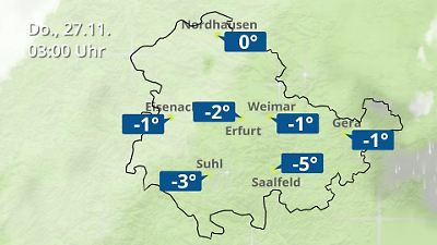 Diese Animation zeigt einen Wetterbericht für Thüringen. Prognose vom 26. November 2025 um 18:10 Uhr