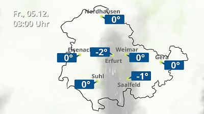 Diese Animation zeigt einen Wetterbericht für Thüringen. Prognose vom 04. Dezember 2025 um 18:10 Uhr